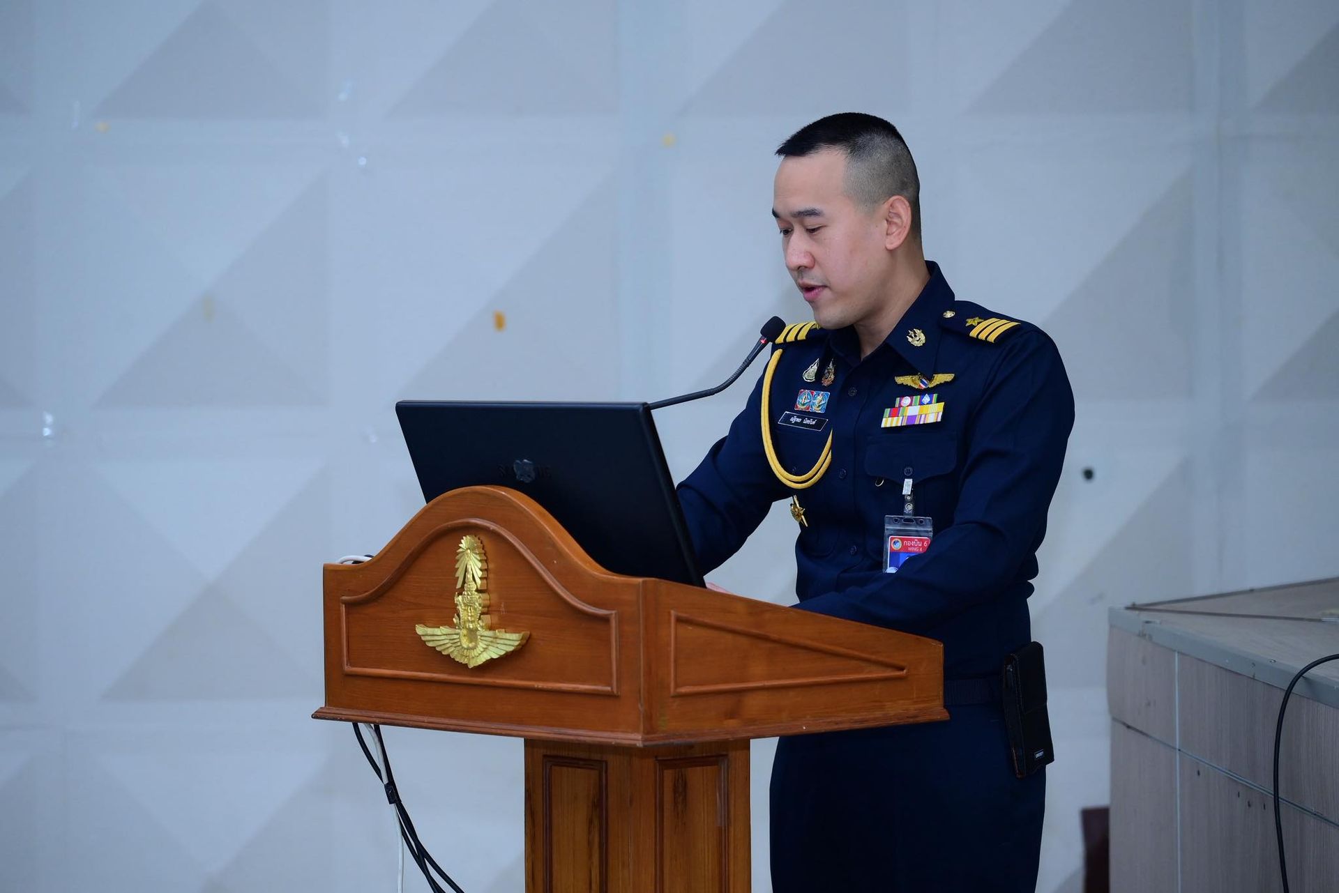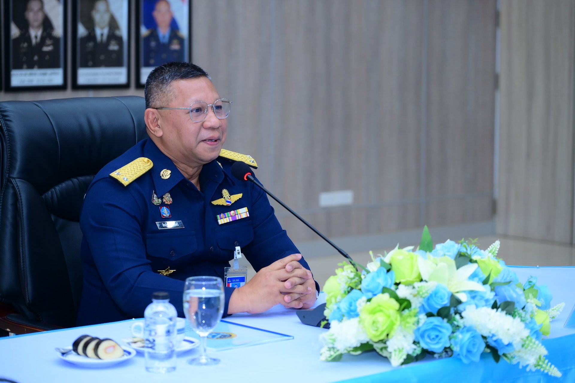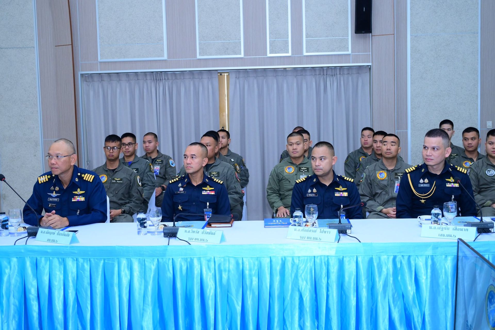 อากาศนาวาอากาศเอก ฉัตฤกษ์ ป้องกันภัย ผู้บังคับการกองบิน ๖ พร้อมด้วยรองผู้บังคับการกองบิน ๖ และเสนาธิการกองบิน ๖ ให้การต้อนรับพลอากาศตรี สิทธิพล ป้อมตรี ผู้อำนวยการสำนักการฝึก กรมยุทธการทหารอากาศ ในฐานะหัวหน้าคณะตรวจเยี่ยม และคณะตรวจเยี่ยม เนื่องในโอกาสเดินทางมาตรวจเยี่ยมรับฟังการบรรยายสรุป หารือข้อขัดข้อง และมอบนโยบายในการปฏิบัติงานด้านยุทธการของฝ่ายอำนวยการ กองบิน ๖ โดยมีผู้บังคับฝูงบินกองบิน ๖ หัวหน้าหน่วยขึ้นตรงกองบิน ๖ และข้าราชการกองบิน ๖ เข้าร่วมประชุม ณ หอประชุมธูปะเตมีย์ กองบิน ๖
