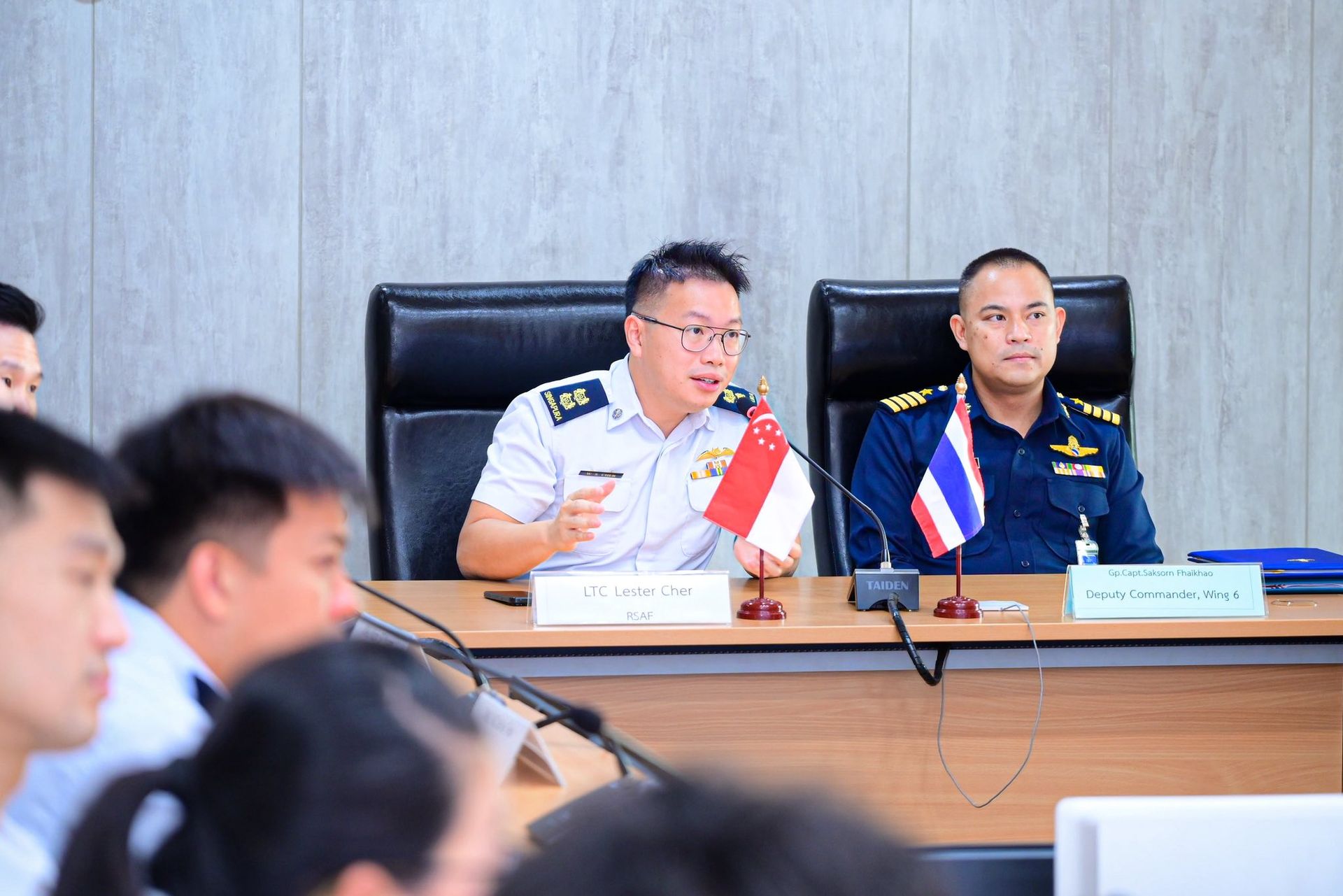 นาวาอากาศเอก ศักย์สรณ์ ไฝขาว รองผู้บังคับการกองบิน ๖ ให้การต้อนรับคณะโครงการแลกเปลี่ยนการเยือน ทอ.กับ สิงคโปร์ พร้อมหารือข้อราชการกับ รองผู้บังคับการกองบิน ๖ และคณะต้อนรับ โดยจัดให้มีการบรรยายสรุปกิจการกองบิน ๖ และเยี่ยมชมกิจการกองบิน ๖