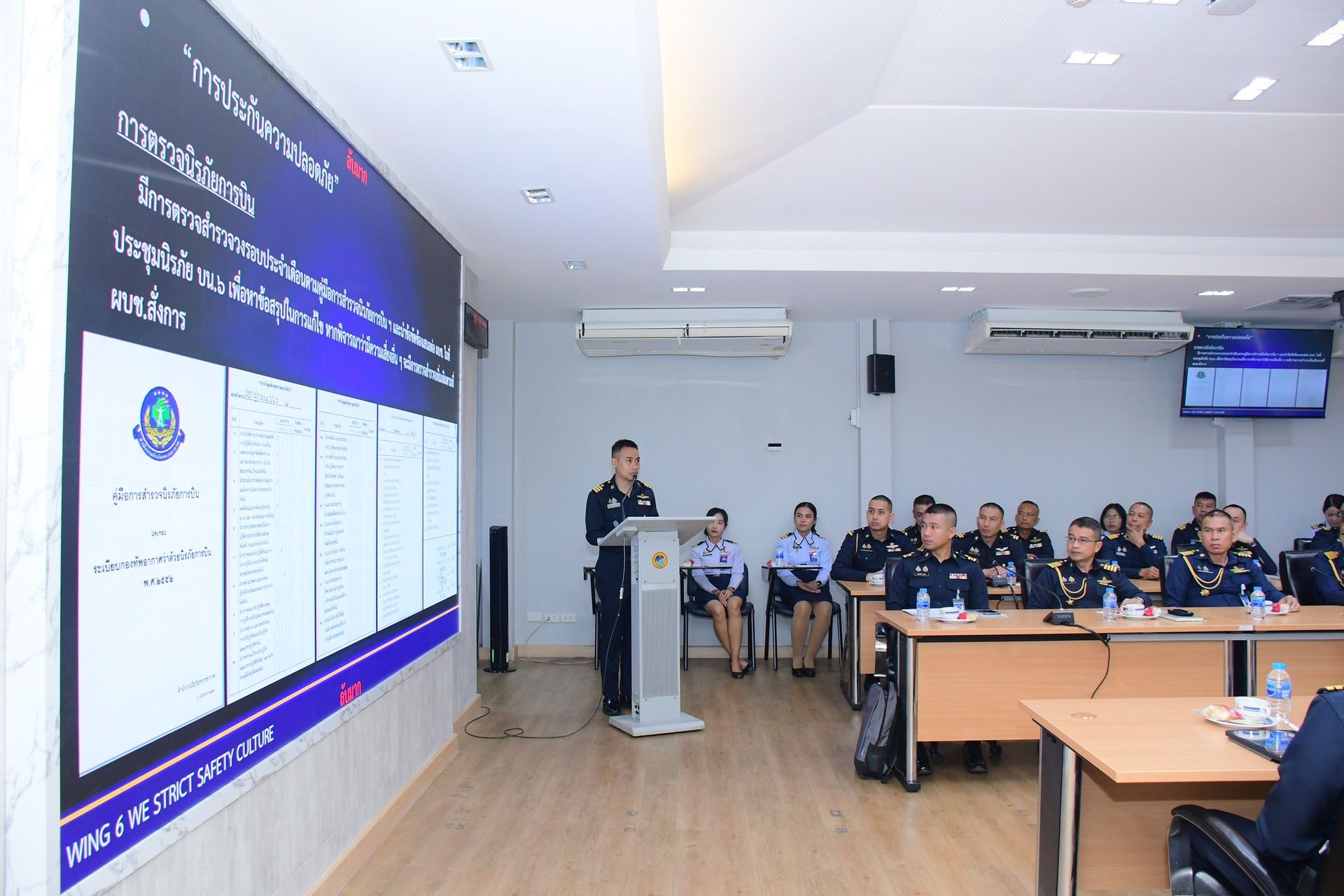 พลอากาศตรี อภิชาต บุญเพ็ชร์ หัวหน้าคณะตรวจเยี่ยมฝ่ายอำนวยการนิรภัย สำนักงานนิรภัยทหารอากาศ ตรวจเยี่ยมกองบิน ๖ พร้อมฟังบรรยายสรุป ประจำปีงบประมาณ ๖๙ ระหว่างวันที่ ๒๓ - ๒๕ ธันวาคม ๒๕๖๘ โดยมี นาวาอากาศเอก ฉัตฤกษ์ ป้องกันภัย ผู้บังคับการกองบิน ๖ พร้อมด้วยหัวหน้าหน่วยขึ้นตรงกองบิน ๖ ให้การต้อนรับ ณ ห้องประชุมศูนย์ปฏิบัติการกองบิน ๖ เมื่อวันที่ ๒๓ ธันวาคม ๒๕๖๘